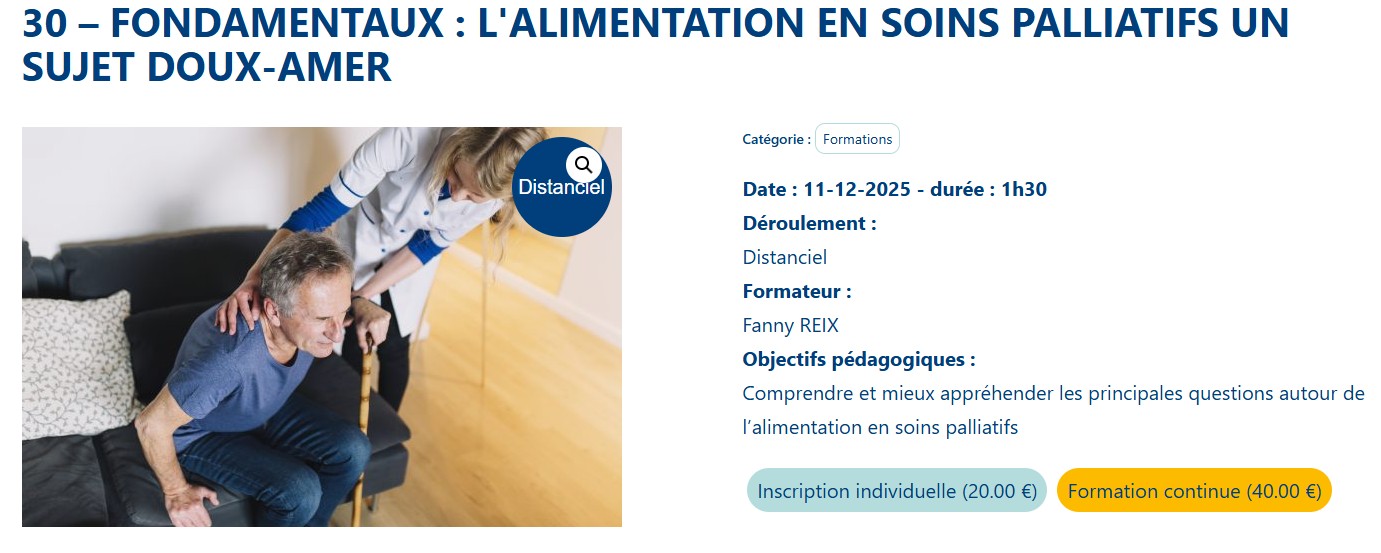 Webinaire sur le thème :"Fondamentaux : l'alimentation en soins palliatifs un sujet doux-amer"