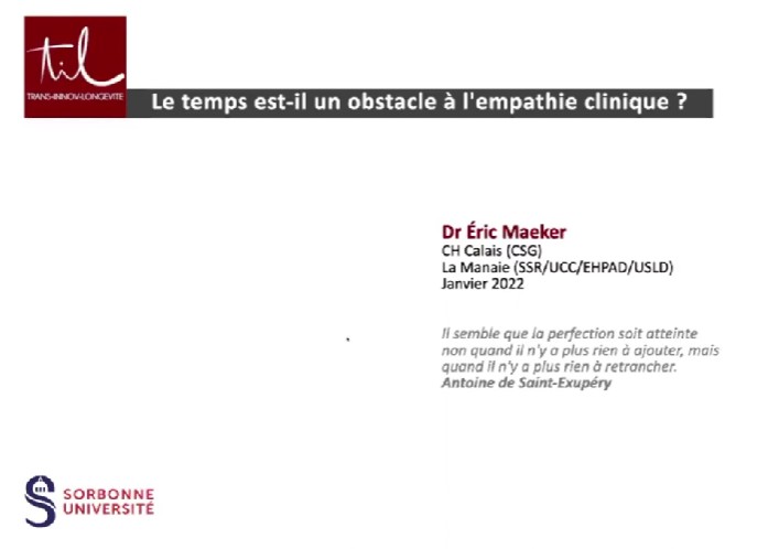 Le temps est-il un obstacle à l'empathie clinique ? Le point de vue d'un gériatre - 25 janvier 2022
