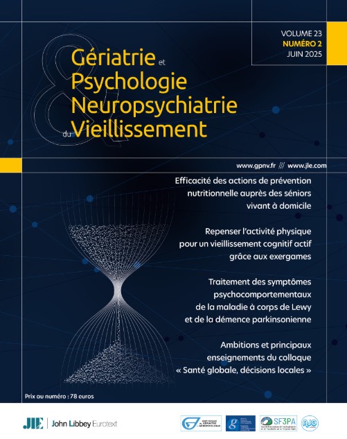 - Gériatrie & Psychologie Neuropsychiatrie du Vieillissement est consacrée à la fois à la gériatrie, fruit d'une réflexion collective sur la place de cette spécialité dans la littérature internationale et à la psychologie du sujet âgé et aux affections cérébrales associées au vieillissement.